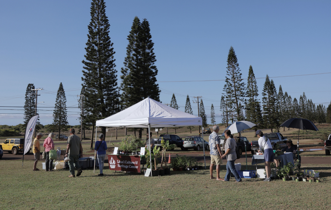 Whatever the name, the space featured tables and tents with island-grown produce, herbs, and seedlings from Hale Lānaʻi, Johnson Farms, Kapua Farms, Kumu Ola Farm, Lānaʻi Culture & Heritage Center, and Lānaʻi Green Resources. Stalls offered a variety of crops grown on-island, including eggplant, lilikoʻi, māmaki, noni, pak choy, and papaya.